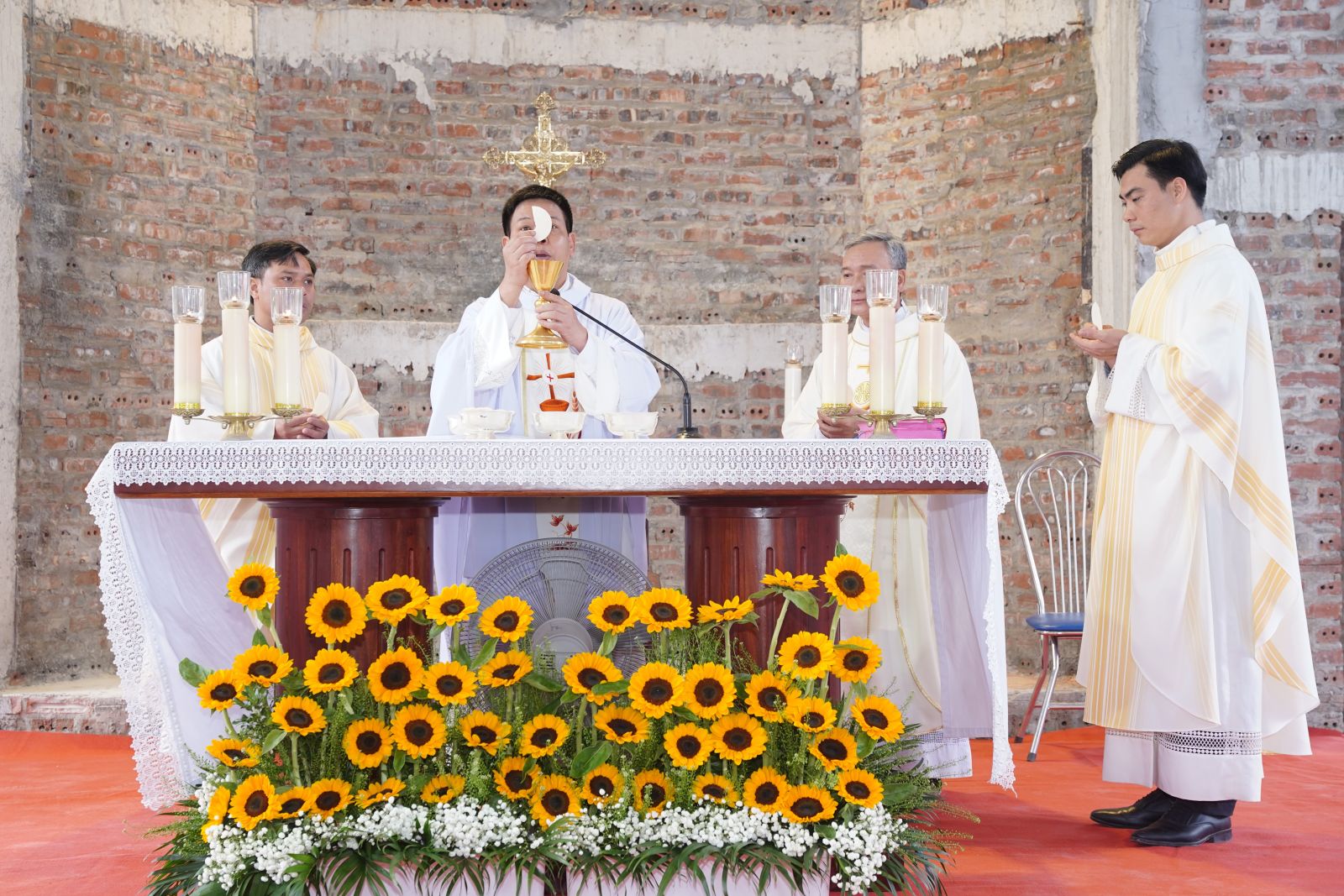 Thánh lễ khánh thành mái Nhà thờ do Cha Giuse Phạm Đức Văn – Chính xứ Sở Kiện, long trọng chủ sự vào lúc 10h00. Hiệp dâng với ngài có sự hiện diện của Cha Giuse Chu Quang Vượng, OFM., Cha Giuse Nguyễn Văn Tuấn, Cha phó Giuse Nguyễn Đức Tùng, cùng sự hiệp thông của quý nam nữ tu sĩ, quý khách, các em thiếu nhi và đông đảo cộng đoàn dân Chúa.