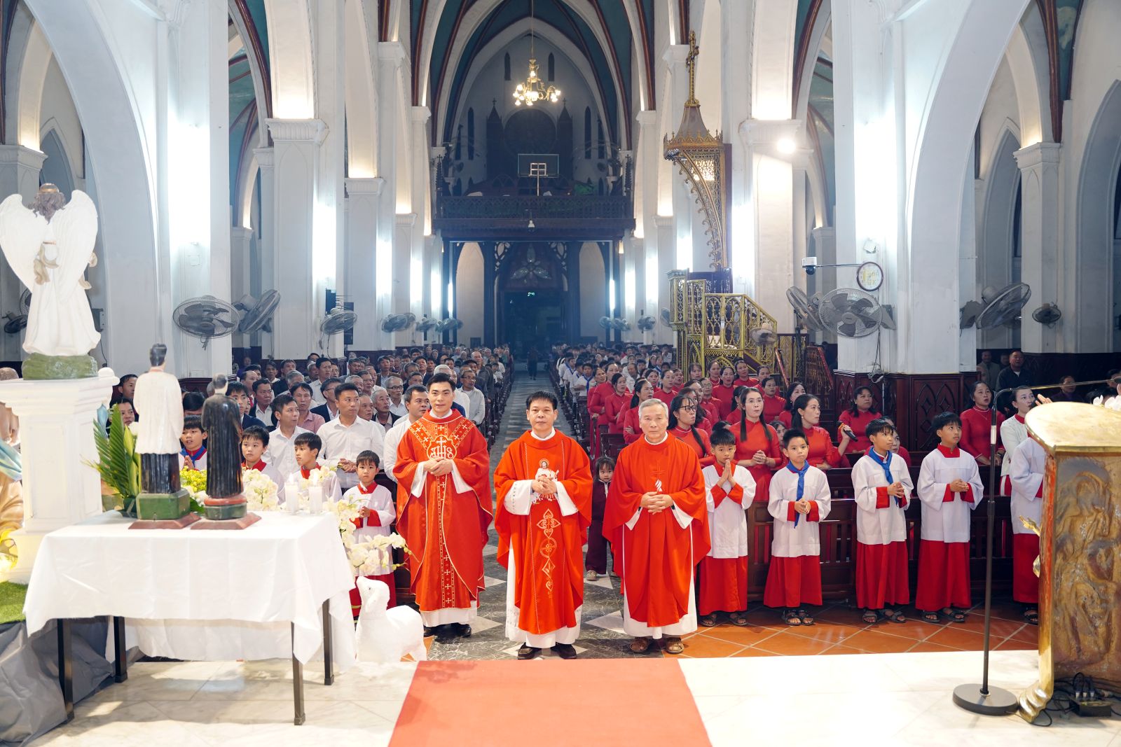 Vào lúc 18h30, Cha xứ Giuse đã long trọng chủ sự Thánh lễ nơi Thánh đường của Giáo họ.