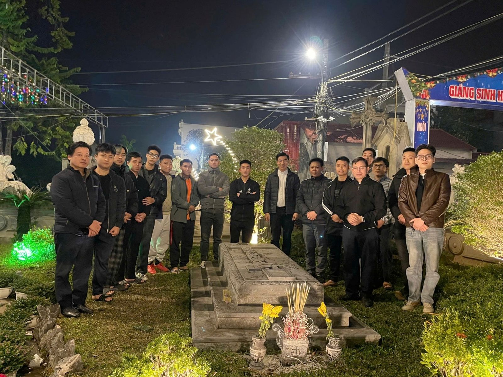 Sau trận giao hữu, quý cha, quý thầy và hai đội bóng cùng kính viếng và cầu nguyện cho linh hồn Cha cố Phêrô Lưu Văn Nhật – Linh mục Bản hương Giáo xứ Kẻ Sở (Sở Kiện).