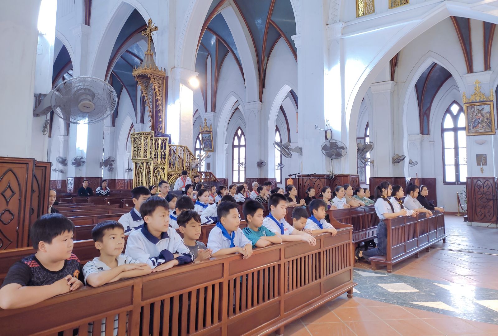 Kết thúc Thánh lễ, Cha phó Giuse đặt Mình Thánh Chúa để cộng đoàn hiệp chung tâm tình mến yêu, cảm tạ và suy tôn trước sự hiện diện của Chúa Giêsu Thánh Thể.