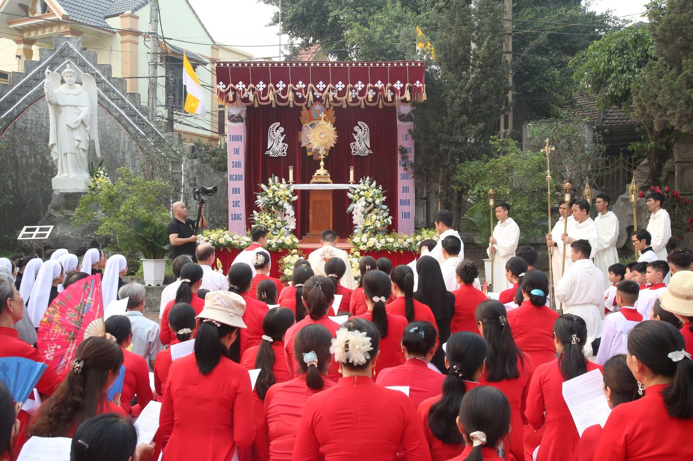 Kết thúc Thánh lễ, các giờ chầu Mình Thánh Chúa tiếp tục cho đến 15h30. Sau đó, quý cha Giáo xứ Sở Kiện cùng cộng đoàn rước tôn vinh Thánh Thể xung quanh khuôn viên Nhà thờ và hiệp dâng Thánh lễ tạ ơn trong ngày chầu hồng phúc.