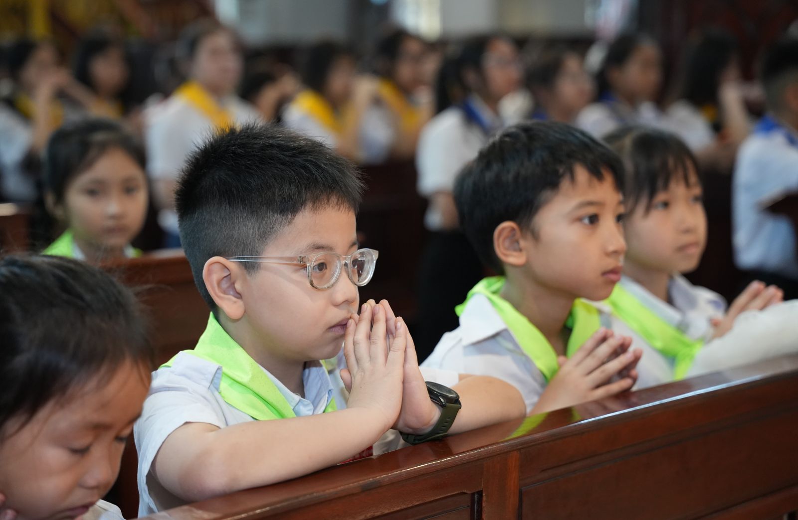 Ngay từ 6h00 sáng, các em Thiếu nhi Thánh Thể Xứ đoàn Tê-rê-sa Hài Đồng Giê-su đã cùng hiệp dâng Thánh lễ khai mạc ngày Chầu lượt của Giáo xứ. Sau Thánh lễ, Cha Giu-se Nguyễn Đức Tùng – Phó xứ Sở Kiện, đã đặt Mình Thánh Chúa để các em thiếu nhi, các Hội đoàn, các Giáo xứ, Giáo họ lân cận và cộng đoàn dành thời gian lắng đọng tâm hồn bên Chúa Giê-su Thánh Thể.