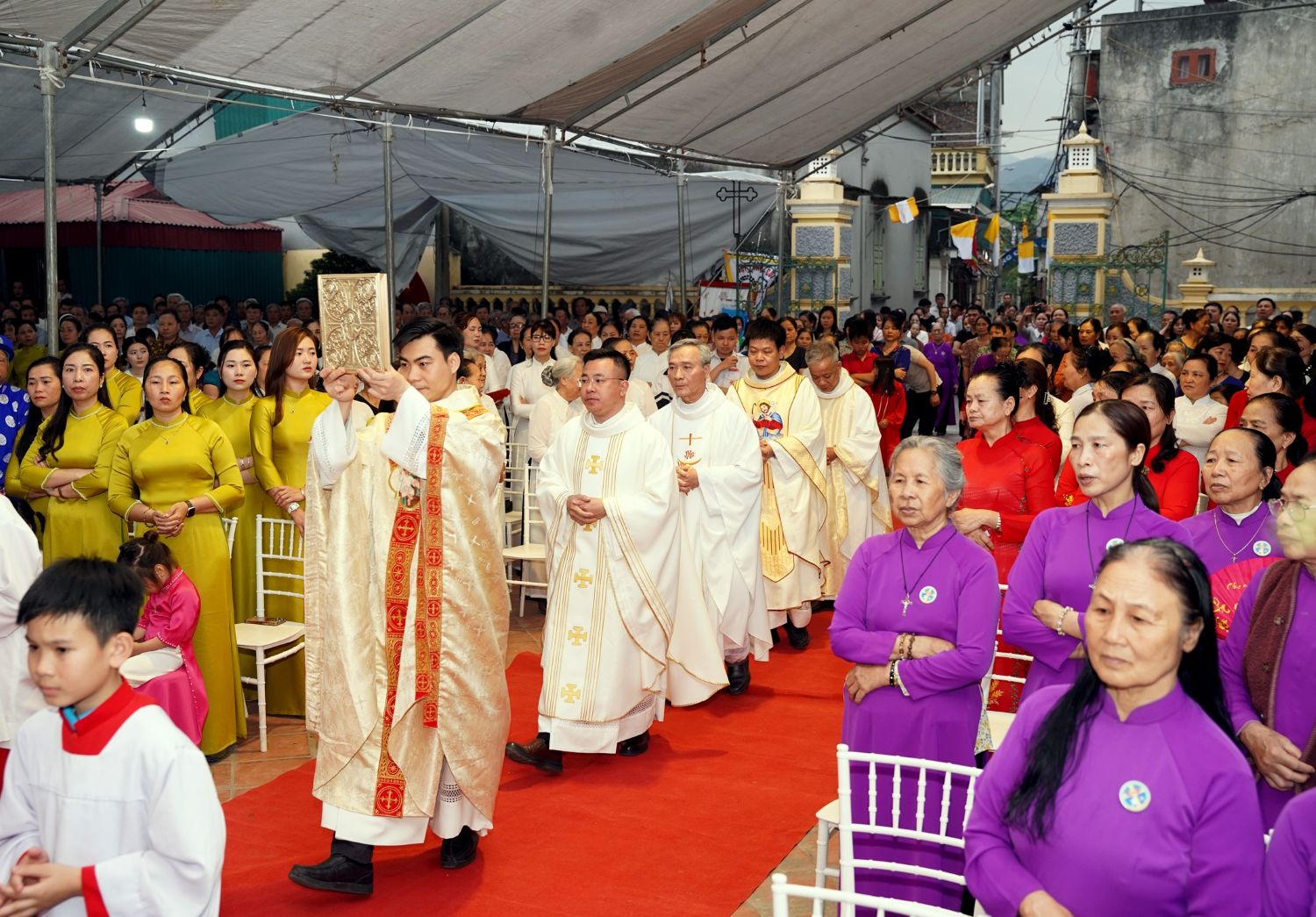 Chiều thứ Sáu, ngày 20/03/2026, bầu không khí của niềm vui bao trùm khắp Giáo xứ Sở Kiện khi cộng đoàn cùng nhau tham dự nghi thức rước kiệu và hiệp dâng Thánh lễ mừng kính Thánh Giuse – Đấng quan thầy của Giáo họ Kiện. Đây là một sự kiện thường niên đầy ý nghĩa, thể hiện lòng tôn kính sâu sắc của giáo dân Sở Kiện đối với vị Thánh Cả.