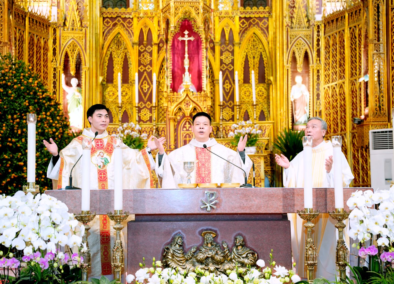 Mở đầu Thánh lễ, Cha xứ Giuse gửi lời tri ân sâu sắc đến quý cha, quý thầy, quý sơ, quý HĐMV cùng các Ban/Hội đoàn và các cá nhân đã nhiệt thành cộng tác trong mọi công việc của Giáo xứ suốt năm qua. Trong bầu khí hân hoan, Cha cũng gửi lời chúc mừng năm mới bình an đến toàn thể cộng đoàn.