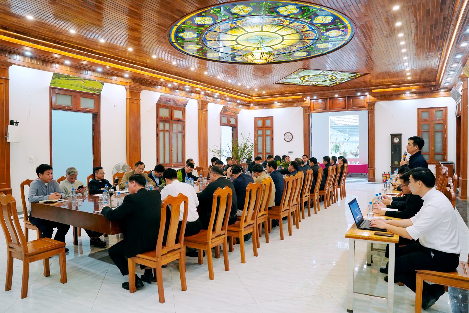 Sau khi xin ơn Chúa thánh hóa, Cha Quản hạt An-tôn Trần Quang Tiến và quý cha họp bàn mục vụ Giáo hạt cùng phần báo cáo công tác của các Ủy ban.
