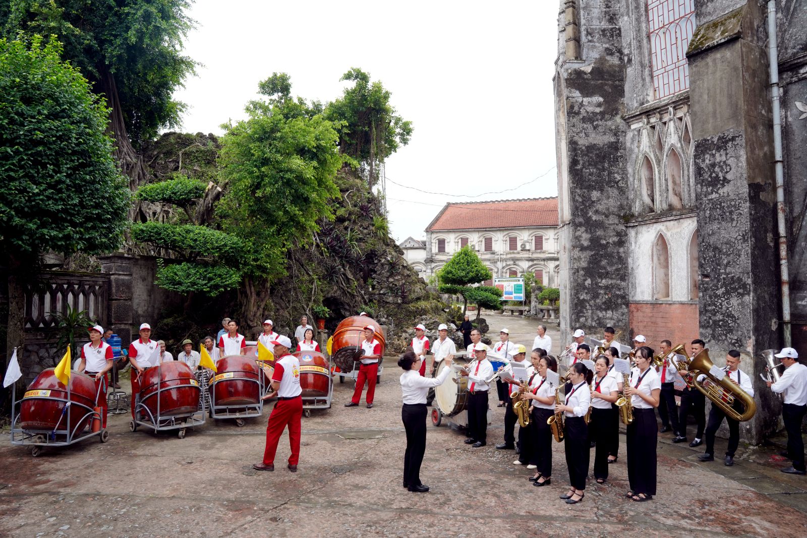 Ngay từ sớm, nơi Giáo xứ Sở Kiện đã thấm đượm bầu khí linh thiêng của ngày hành hương. Với từng bước chân tiến về nhà Chúa, những người con Sở Kiện hân hoan quy tụ nơi quê hương mình để cùng nhau sống những giây phút thiêng liêng của Năm Thánh. Ban kèn – trống của Giáo xứ cùng hòa vang những bài ca hào hùng tôn vinh hai Thánh Tử Đạo quê hương.