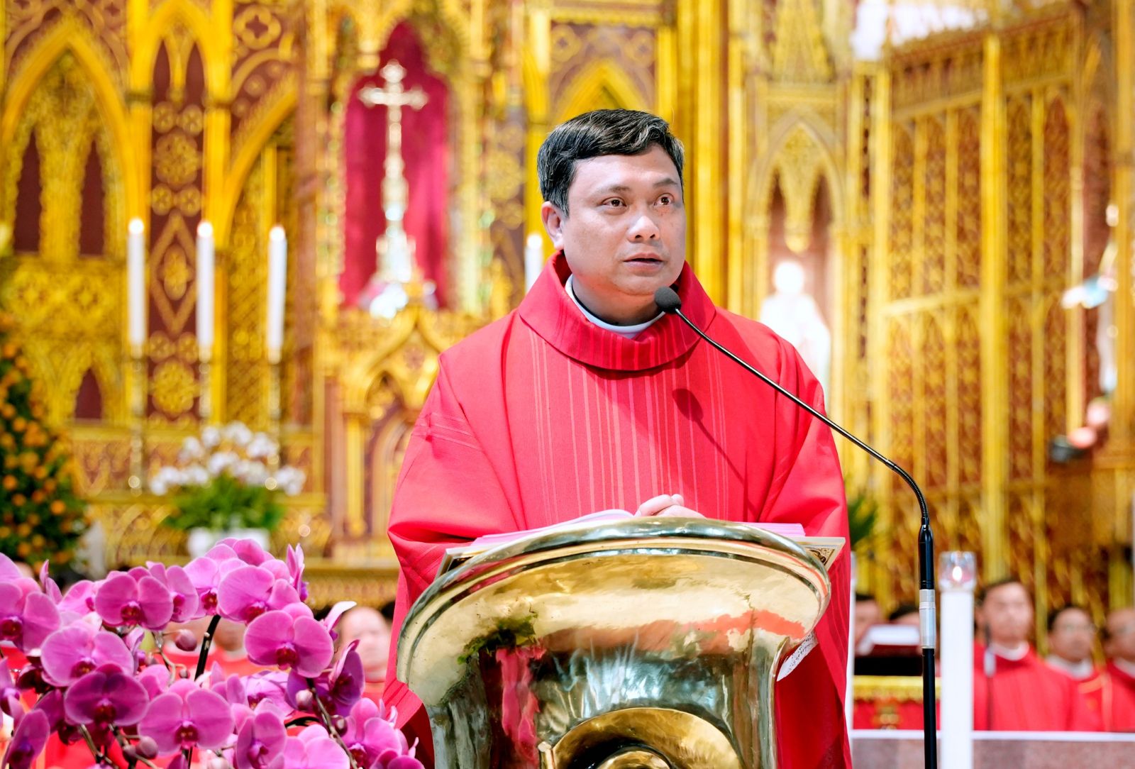 Mở đầu Thánh lễ, Cha Quản hạt An-tôn ngỏ lời: “Chúng ta cùng tạ ơn Chúa vì một năm đã qua với muôn vàn ơn lành, đồng thời xin Các Thánh Tử Đạo chuyển cầu cùng Chúa, để khi bước sang năm mới, mỗi người đều biết sống đức tin một cách sống động và vẹn toàn trong chính ơn gọi và môi trường sống của mình.”