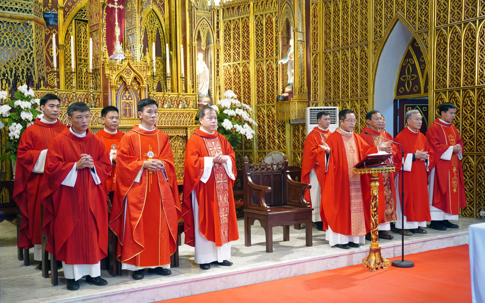 Vào lúc 10h00, sau khi dâng hương và kính viếng các Thánh Tử Đạo Việt Nam, quý cha cùng cộng đoàn phụng vụ long trọng bước vào Thánh lễ. Giữa tiếng hát ngân vang, cộng đoàn dâng lời tạ ơn Thiên Chúa và tôn vinh các Thánh Tử Đạo: