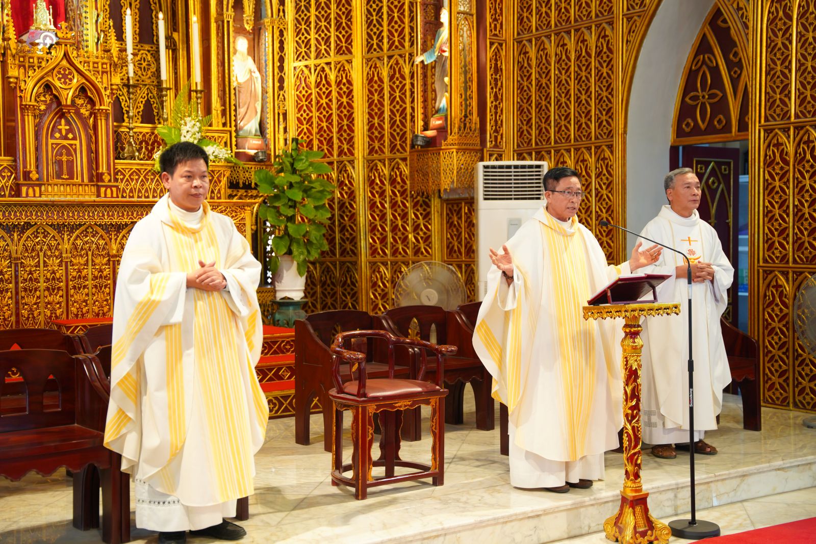 Trước Thánh lễ, quý cha và cộng đoàn tiến về Nhà xin khấn hai Thánh Tử Đạo quê hương Sở Kiện: Cha Thánh Phêrô Trương Văn Thi và Thầy Thánh Phêrô Trương Văn Đường để kính viếng các ngài.