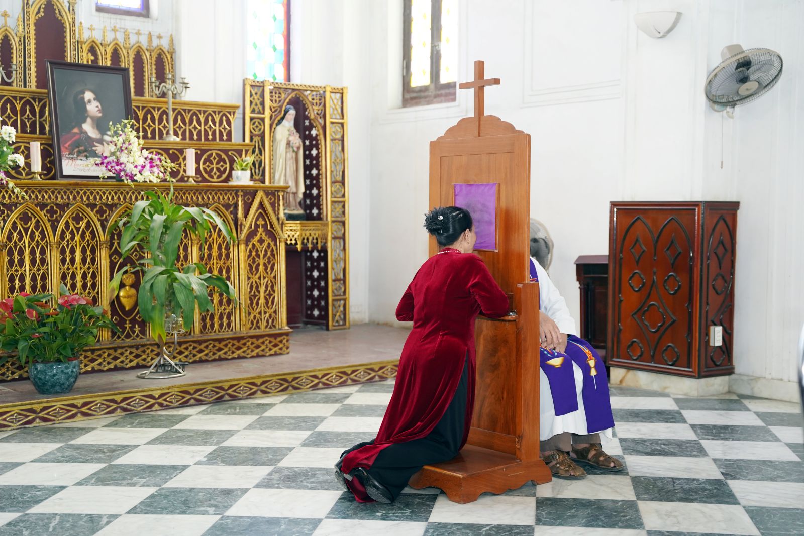 Sau khi thăm viếng Thánh tích và cầu nguyện với các Thánh Tử Đạo, cộng đoàn quy tụ nơi Tiểu Vương cung Thánh đường Đức Mẹ Vô Nhiễm Nguyên Tội, sốt sắng tham dự giờ Chầu Thánh Thể. Quỳ trước tòa giải tội lãnh Bí tích Hòa giải là khoảnh khắc thiêng liêng để cộng đoàn kín múc lòng thương xót Chúa.