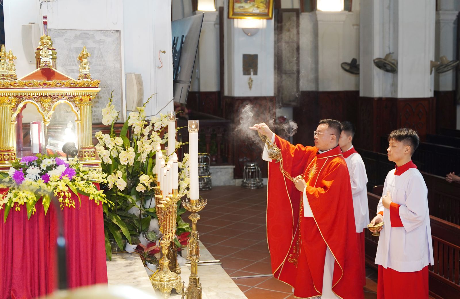 Thánh lễ do Cha Micae Nguyễn Hoàng Nam – Chính xứ Lan Mát chủ sự, cùng sự hiệp thông của Cha Giuse Phạm Đức Văn – Giám đốc TTHH, Cha Giuse Nguyễn Đức Tùng – Phó xứ Sở Kiện, quý nam nữ tu sĩ và cộng đoàn dân Chúa Giáo xứ Sở Kiện – Khắc Cần – Lan Mát.