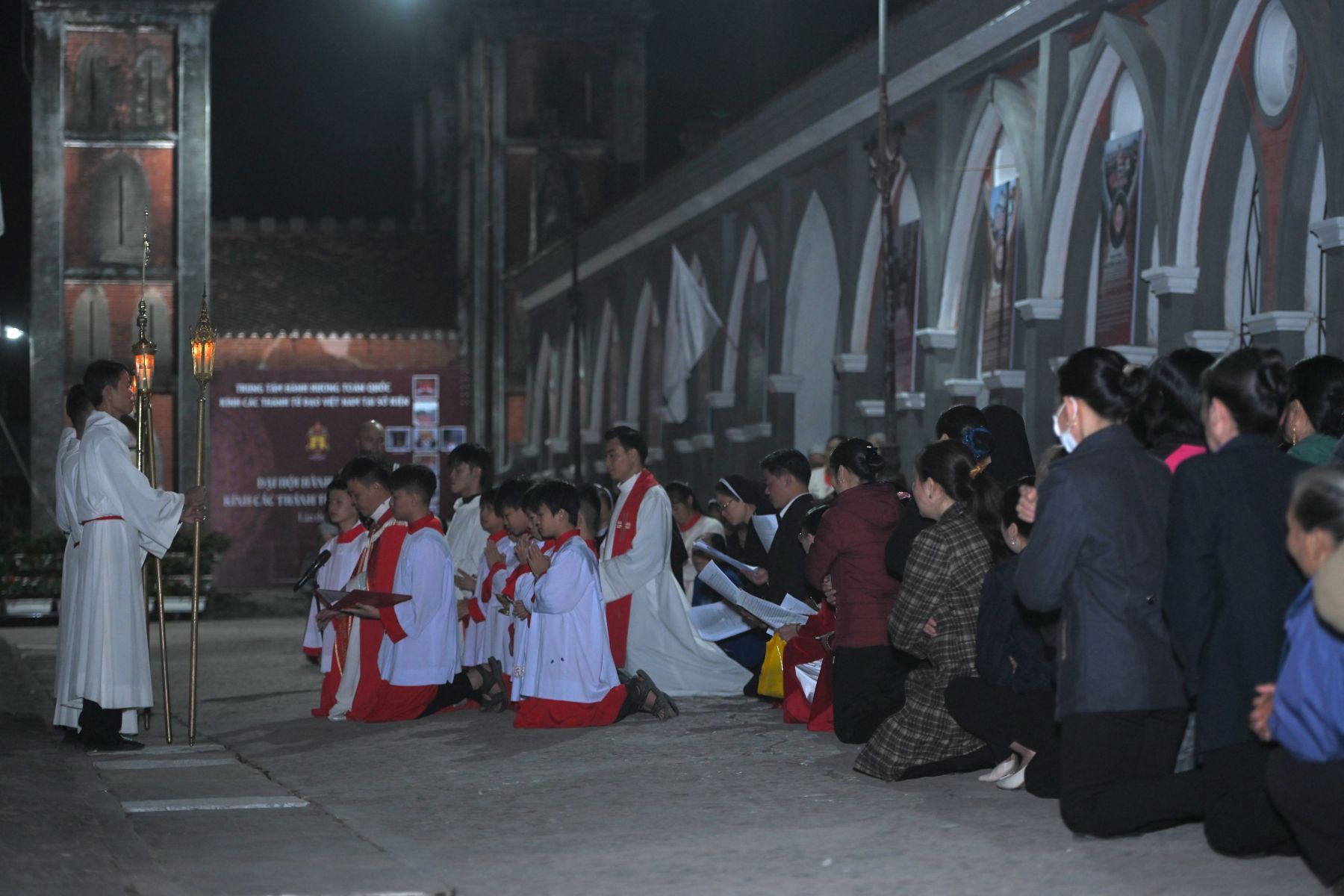 Sau Thánh lễ, quý cha và cộng đoàn cùng đi đàng Thánh Giá Trọng thể. Bước trên “chặng đường tình yêu” ấy, cộng đoàn từng bước theo chân Chúa Kitô và các Thánh Tử Đạo.