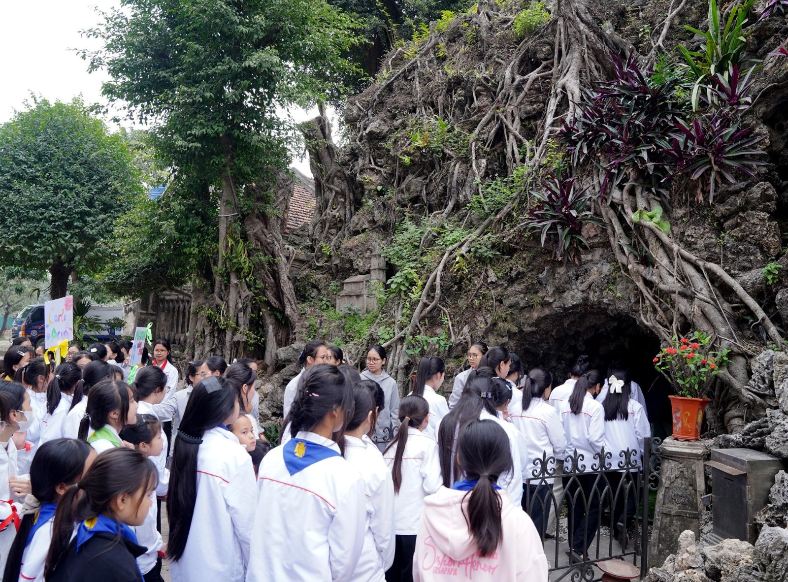 Các bạn trẻ thăm Hang toại đạo