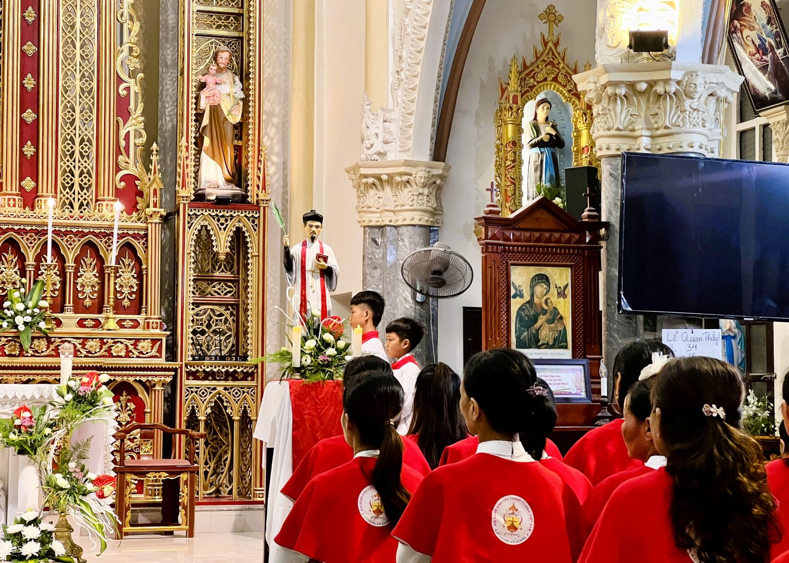 Trước Thánh lễ, Đức TGM Giuse cùng quý Cha đồng tế tiến về Nơi lưu giữ Thánh tích các Thánh Tử Đạo để dâng hương và kính viếng các ngài. Cộng đoàn cùng hiệp thông trong lời kinh tiếng hát để tôn vinh các vị tiền nhân.