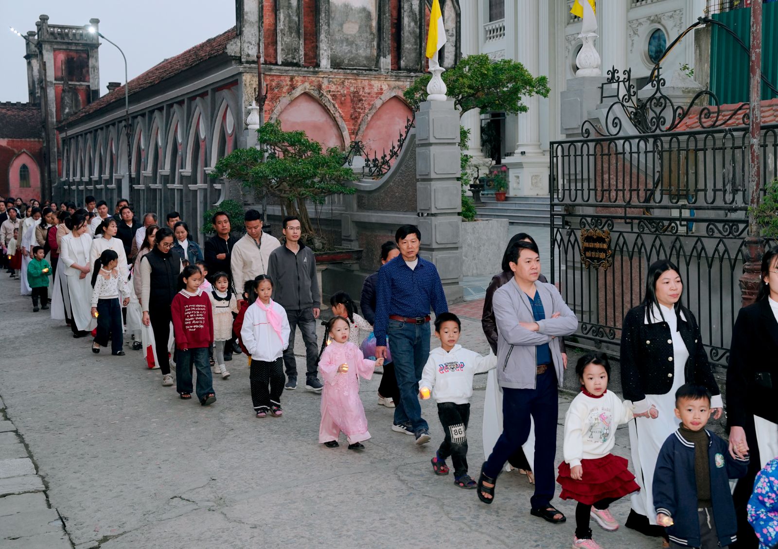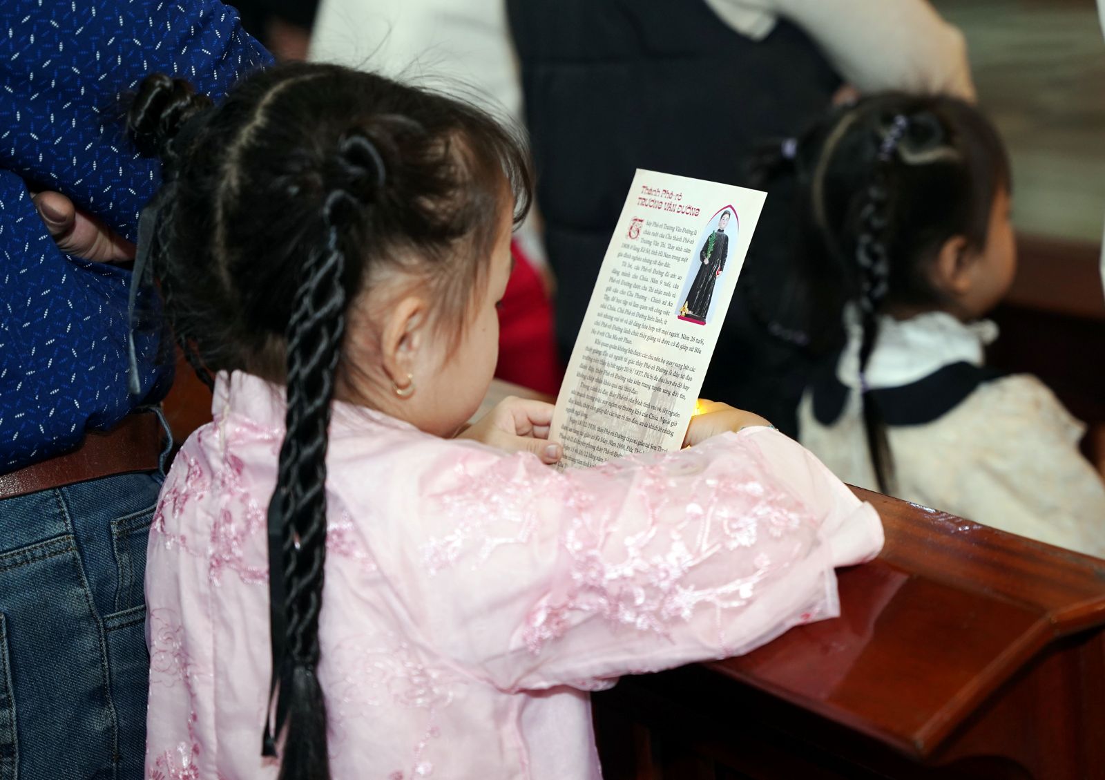 Kế đó, các em nhỏ tay trong tay cùng bố mẹ, với ánh nến sáng lung linh tiến bước vào Tiểu Vương Cung Thánh Đường. Từng bước đi của mỗi gia đình như nối tiếp gương sáng của Đức Mẹ và Thánh Cả Giuse, dâng người con mến yêu cho Thiên Chúa, nguyện xin Người chúc lành và thương chở che.