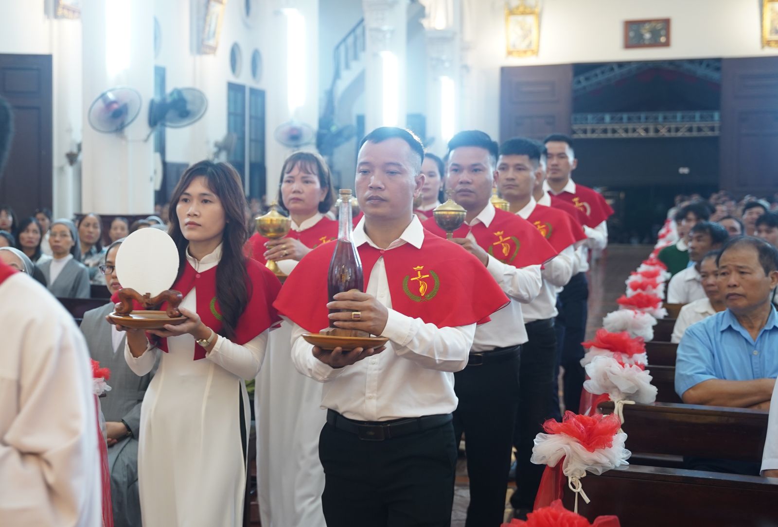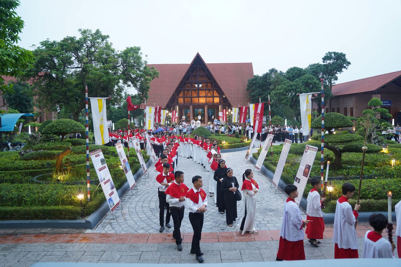 Trong bầu khí trang trọng và linh thiêng, đoàn rước hân hoan tiến về Nhà Chúa. Sắc áo đỏ rực rỡ là biểu trưng cho màu của tình yêu hiến tế và dòng máu anh hùng của các vị Tử Đạo. Tiếng nhạc hòa với lòng thành kính dẫn đưa cộng đoàn cùng hiệp dâng Thánh lễ do Giuse Phạm Công Nguyên chủ sự vào lúc 18h00. Đồng tế với ngài có sự hiện diện của Cha Giuse Phạm Đức Văn – Chính xứ Sở Kiện, cùng sự hiệp thông của quý sơ, các hội viên Hội sùng kính Các Thánh Tử Đạo, quý khách hành hương và cộng đoàn dân Chúa quy tụ về để tạ ơn Thiên Chúa và tôn vinh vị Thánh anh hùng.