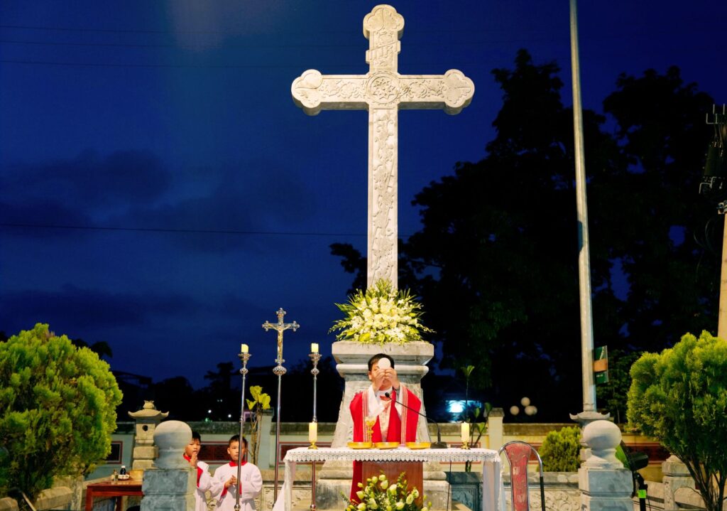 Thứ Sáu, ngày 12/9/2025, cộng đoàn dân Chúa Giáo xứ Sở Kiện mừng lễ suy tôn Thánh Giá, với cuộc