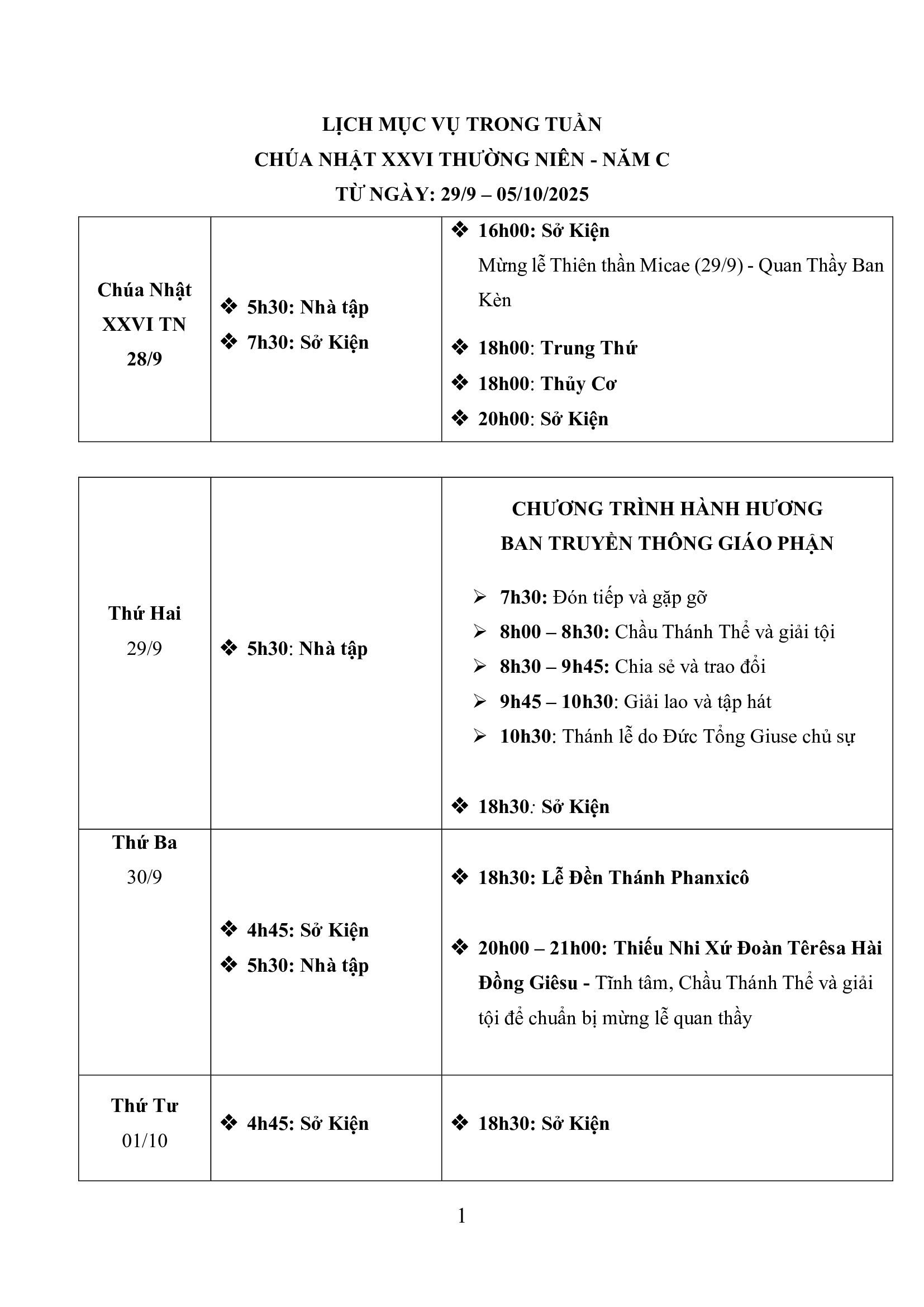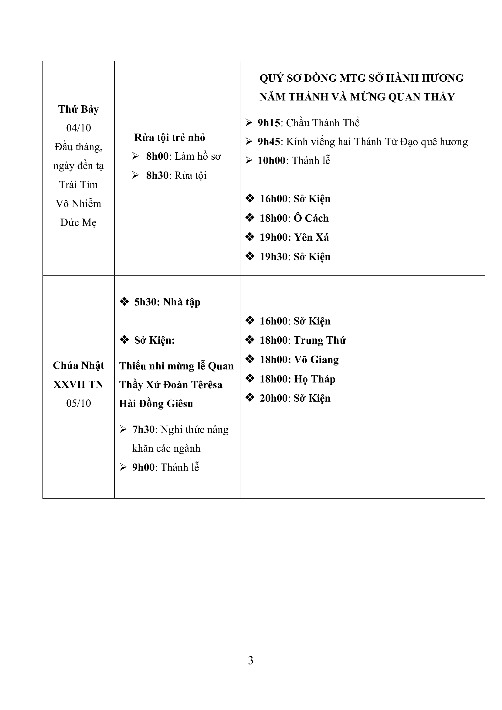 – Chiều ngày 03/10: Giáo xứ Sở Kiện chầu Thánh Thể thứ Sáu đầu tháng