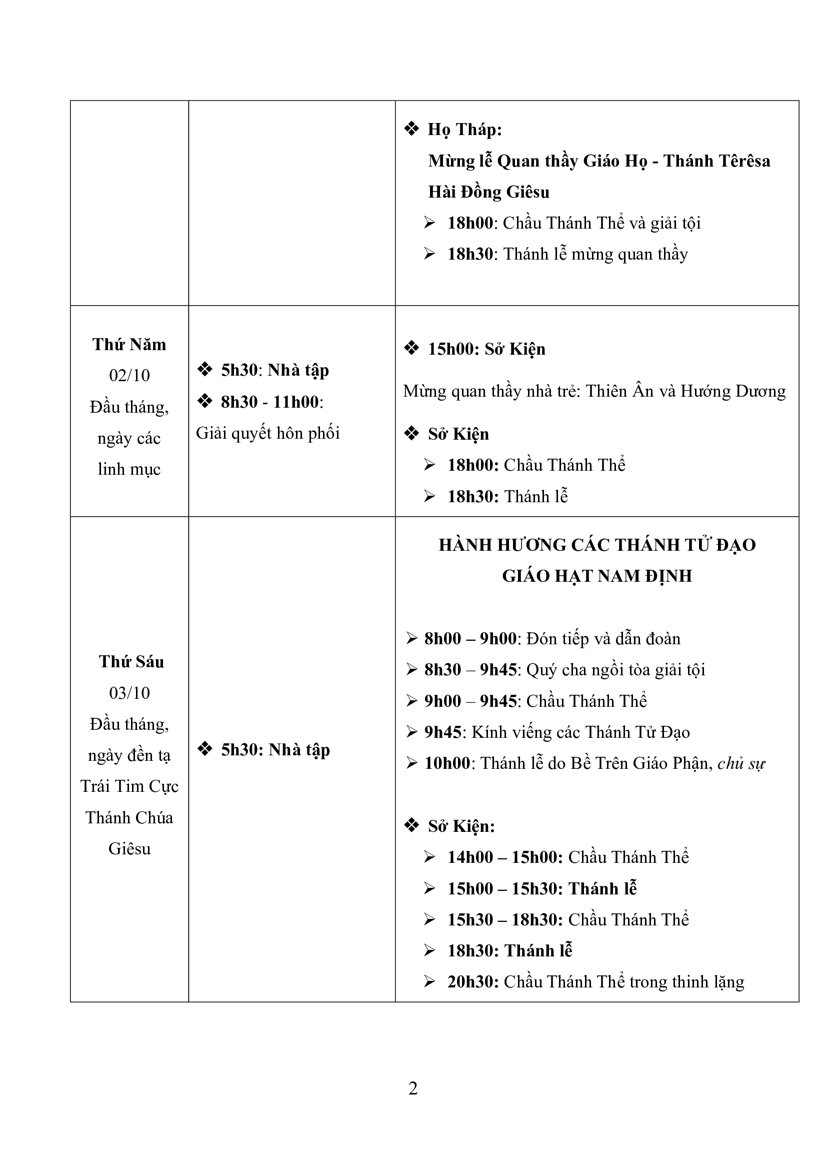 – Sáng ngày 03/10: Giáo hạt Nam Định hành hương kính các Thánh Tử Đạo Việt Nam