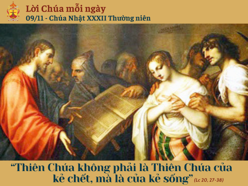 Khi ấy, có mấy người thuộc phái Sađốc, là những người chối không tin có sự sống lại, đến gần Chúa Giêsu hỏi Người. Chúa Giêsu trả lời họ rằng: “Con cái đời này cưới vợ, lấy chồng, song những ai sẽ xét đáng được dự phần đời sau và được sống lại từ cõi chết, thì sẽ không cưới vợ lấy chồng. Họ sẽ không thể chết nữa: vì họ giống như thiên thần. Họ là con cái Thiên Chúa: vì họ là con cái của sự sống lại. Về vấn đề kẻ chết sống lại, thì Môsê đã cho biết điều ấy trong đoạn nói về Bụi gai, khi ông gọi Chúa là Thiên Chúa Abraham, Thiên Chúa Isaac, và Thiên Chúa Giacóp. Nhưng Thiên Chúa không phải là Thiên Chúa của kẻ chết, mà là của kẻ sống. Vì mọi người đều sống cho Chúa”.