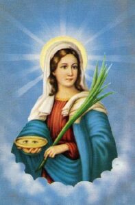 Sau đó với sự nóng giận của một người thua cuộc, quan Paschase đã đã cho quân lính tẩm dầu vào thân xác Lucia và đốt cháy cho đến chết. Lucia đã hy sinh ví Chúa 304.