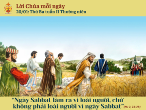 Vào một ngày Sabbat, Chúa Giêsu đi qua đồng lúa, môn đệ Người vừa đi vừa bứt lúa. Tức thì những người biệt phái thưa Người rằng: “Kìa Thầy xem. Tại sao ngày Sabbat người ta làm điều không được phép như vậy?” Người trả lời rằng: “Các ông chưa bao giờ đọc thấy điều mà Ðavít đã làm khi ngài và các cận vệ phải túng cực và bị đói ư? Người đã vào nhà Chúa thời thượng tế Abiata thế nào, và đã ăn bánh dâng trên bàn thờ mà chỉ mình thượng tế được ăn, và đã cho cả các cận vệ cùng ăn thế nào?” Và Người bảo họ rằng: “Ngày Sabbat làm ra vì loài người, chứ không phải loài người vì ngày Sabbat; cho nên Con Người cũng làm chủ cả ngày Sabbat”.
