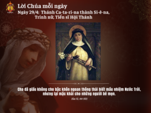 Lạy Chúa, chúng con vừa được Mình và Máu Chúa Ki-tô nuôi dưỡng nơi bàn tiệc thiên quốc. Lương thực này, xưa đã đem lại cho thánh nữ Ca-ta-ri-na Xi-ê-na sự sống của thân xác, nay xin cũng làm cho chúng con được sống muôn đời. Chúng con cầu xin…