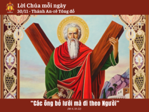 Thưa anh chị em, mừng lễ thánh An-rê hôm nay, mỗi chúng ta hãy nhạy bén để nhận ra tiếng gọi của Chúa và can đảm bước đi theo Người. Nhờ lời chuyển cầu của thánh nhân, xin Chúa củng cố niềm tin cho mỗi người chúng ta. Amen.