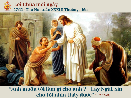 Vậy Chúa Giêsu dừng lại, truyền dẫn anh đến cùng Người. Khi anh đến gần bên Người, Người hỏi anh: