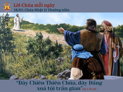 Khi ấy, ông Gioan thấy Ðức Giêsu tiến về phía mình, liền nói: “Ðây là Chiên Thiên Chúa, đây Ðấng