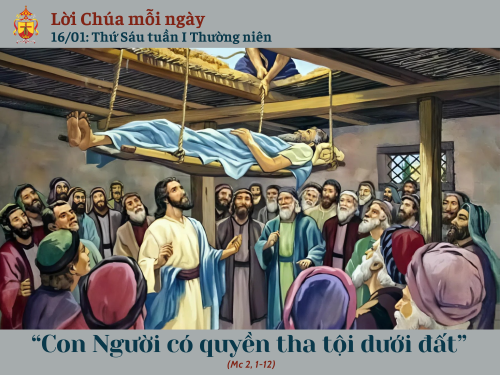 Thấy lòng tin của họ, Chúa Giêsu nói với người bất toại rằng: “Hỡi con, tội lỗi con được tha”.