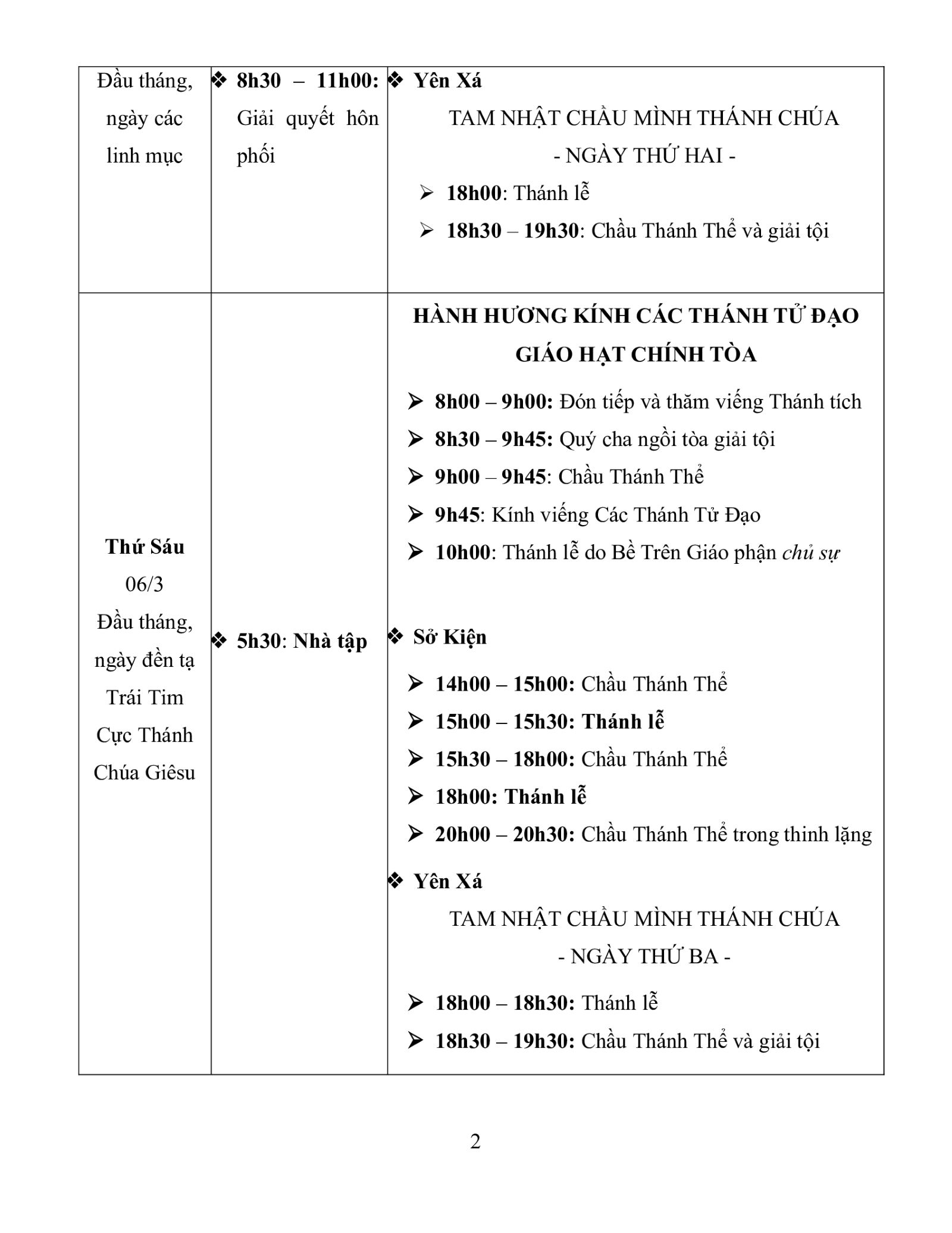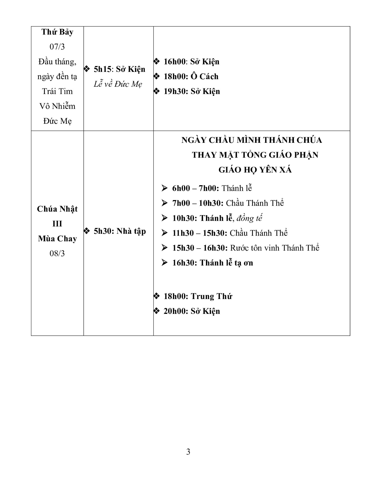 – Chúa Nhật ngày 08/3: Giáo họ Yên Xá Chầu Thánh Thể thay mặt Tổng Giáo phận
