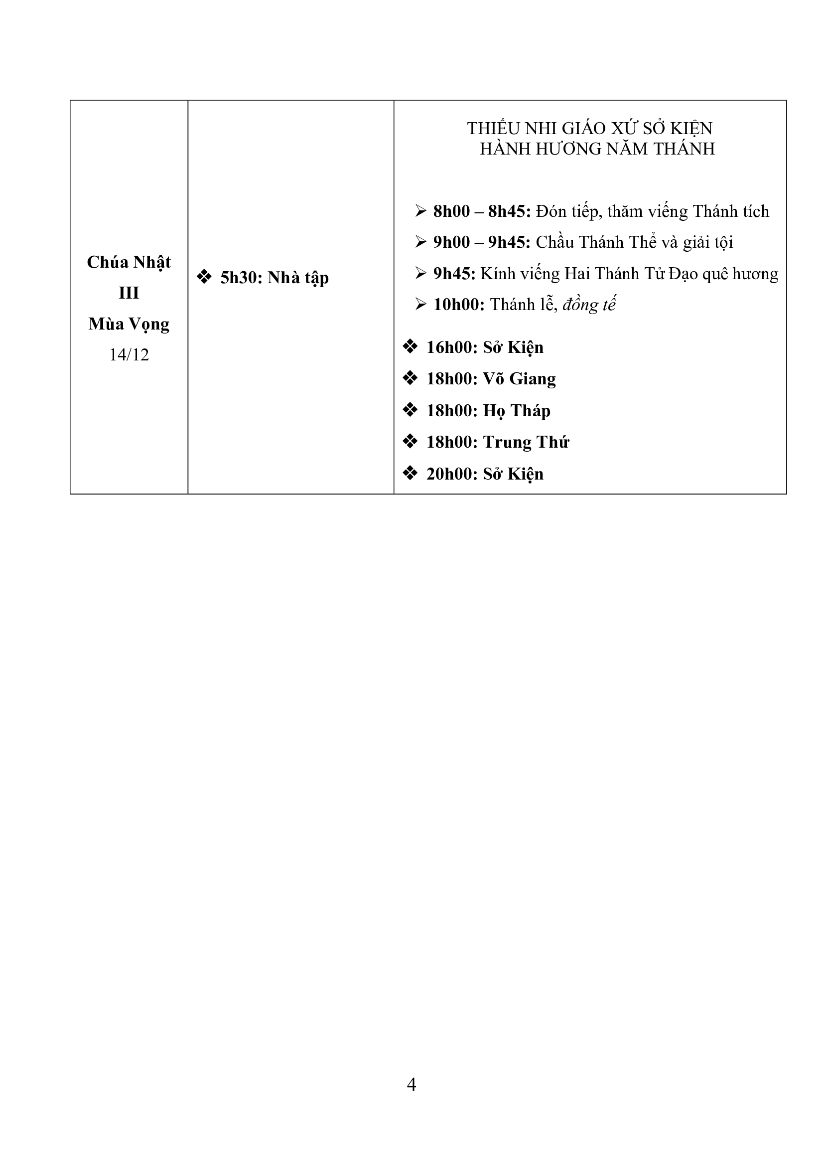 – 18h00 ngày 08/12: Giáo họ Võ Giang mừng lễ quan thầy