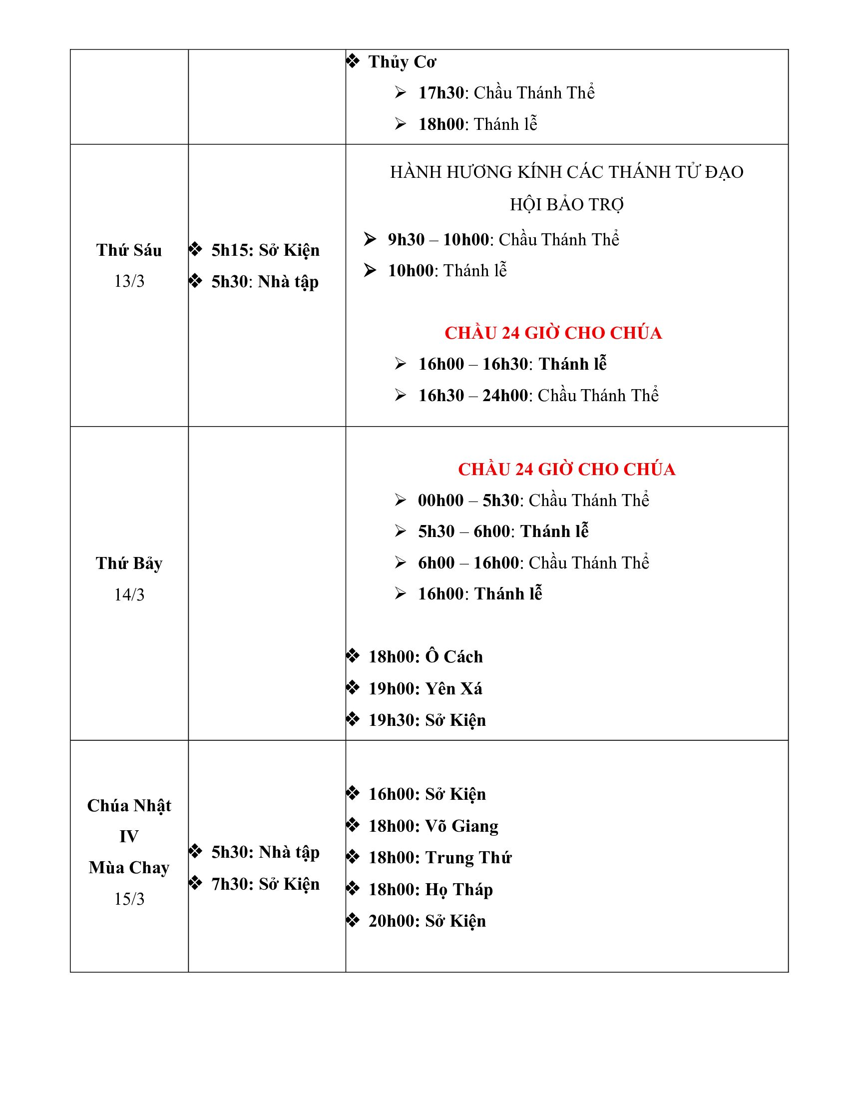 – Ngày 13-14/3: Chầu 24 giờ cho Chúa