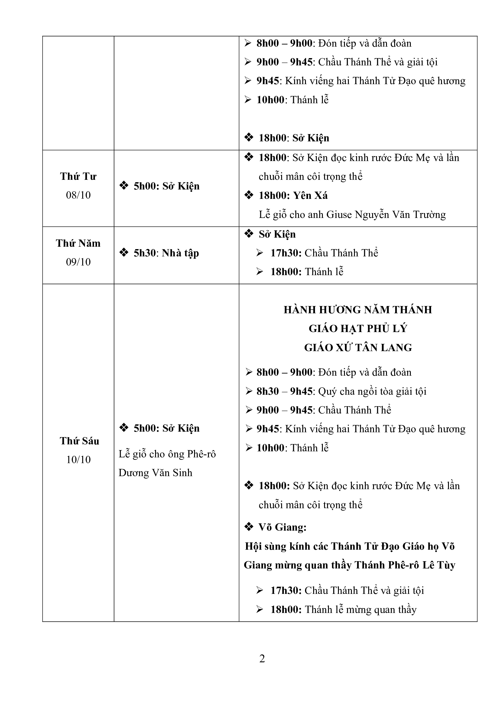 – Ngày 10/10: Chương trình Giáo hạt Phủ lý hành hương Năm Thánh – Giáo xứ Tân Lang