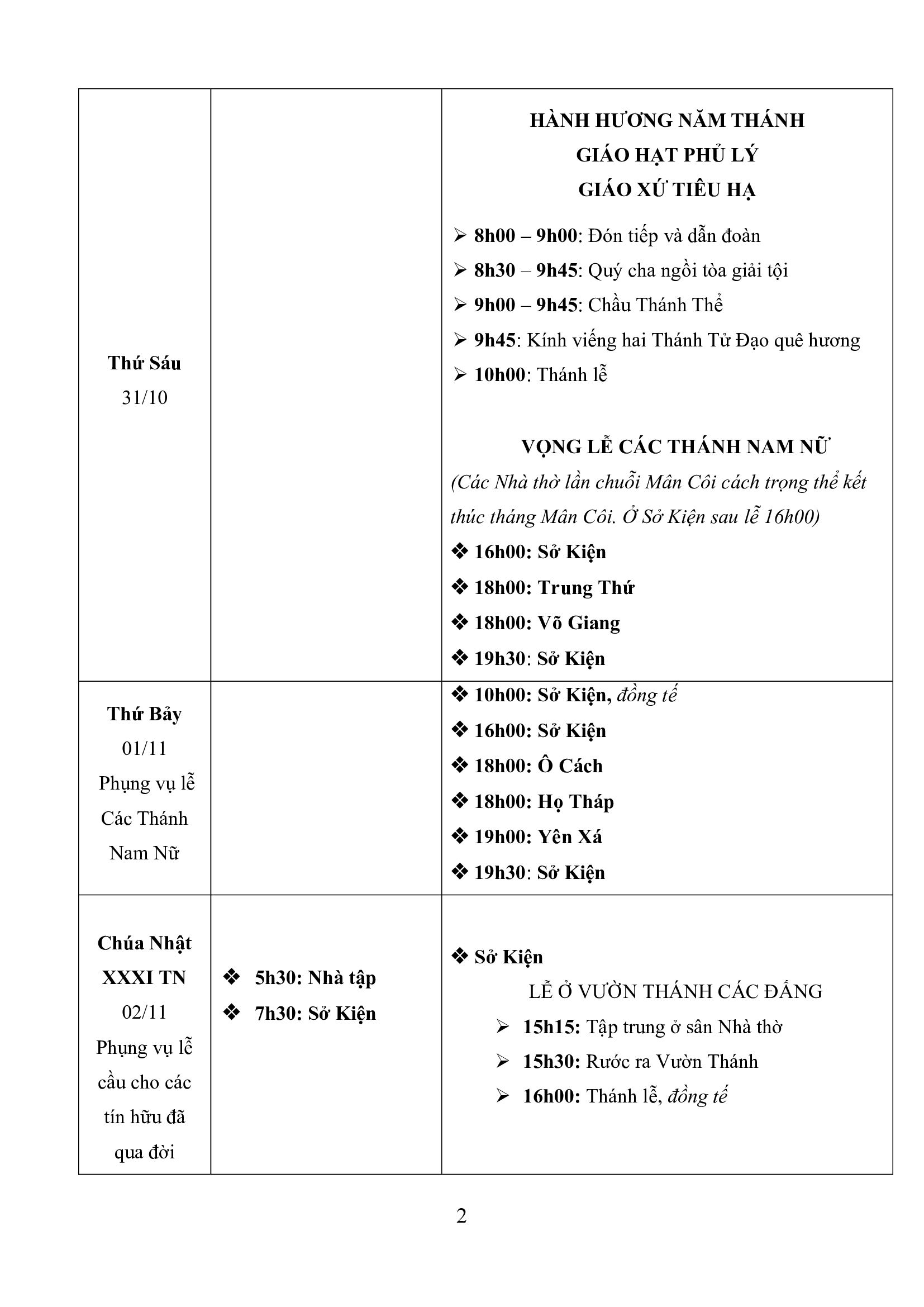 – Ngày 31/10: Chương trình Giáo hạt Phủ lý hành hương Năm Thánh – Giáo xứ Tiêu Hạ