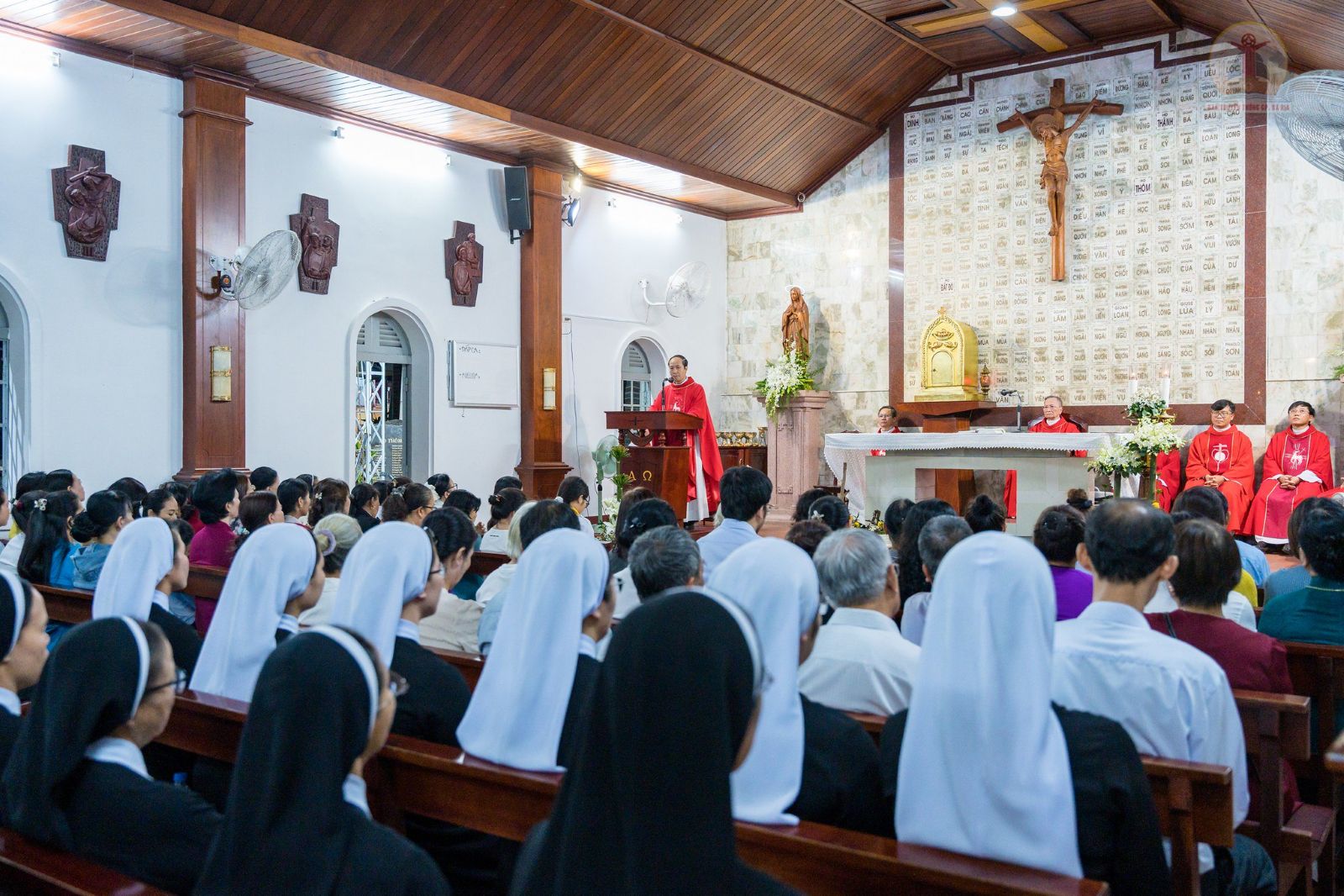Thánh lễ do Đức cha Tôma Nguyễn Văn Trâm – Nguyên Giám mục Giáo phận Bà Rịa chủ tế. Đồng tế với ngài có Cha Quản hạt Bà Rịa cùng quý cha trong Giáo phận. Hiệp thông tham dự thánh lễ có đông đảo quý tu sĩ, cách riêng quý Sơ Hội dòng Mến Thánh Giá Bà Rịa, cùng cộng đoàn tín hữu gần xa.