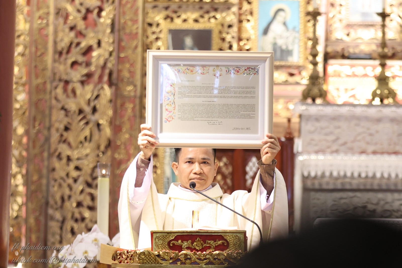 Sau khi Đức cha chủ tế xông hương bàn thờ, cha Chưởng ấn Tòa Giám mục long trọng công bố Sắc lệnh của Tòa Ân Giải Tối Cao, cho phép cử hành Năm Thánh kỷ niệm 125 năm thành lập Giáo phận Phát Diệm, bắt đầu từ ngày 11/01 đến ngày 27/12/2026. Cộng đoàn đáp lại bằng tràng pháo tay thể hiện niềm vui trước hồng ân đặc biệt này.