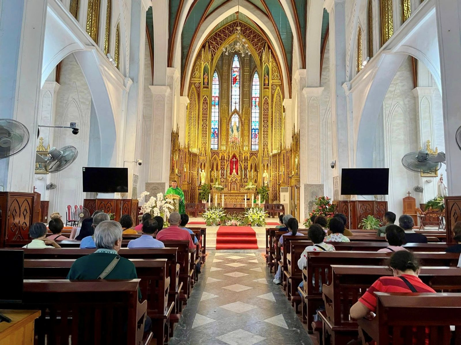 Kế đó, các tín hữu quy tụ tại Tiểu Vương cung Thánh đường Đức Mẹ Vô Nhiễm Nguyên Tội, sốt sắng tham dự Thánh lễ do Cha đồng hành chủ sự vào lúc 14h30.
