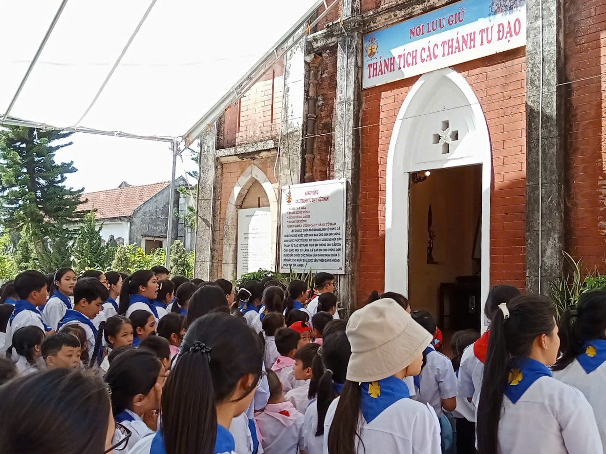 Sau Thánh lễ, cộng đoàn phụng vụ cùng tiến ra đền thờ thánh Phê-rô Thi và thánh Phê-rô Đường trong khuôn viên trung tâm hành hương để kính viếng hai vị thánh quê hương của Giáo xứ.